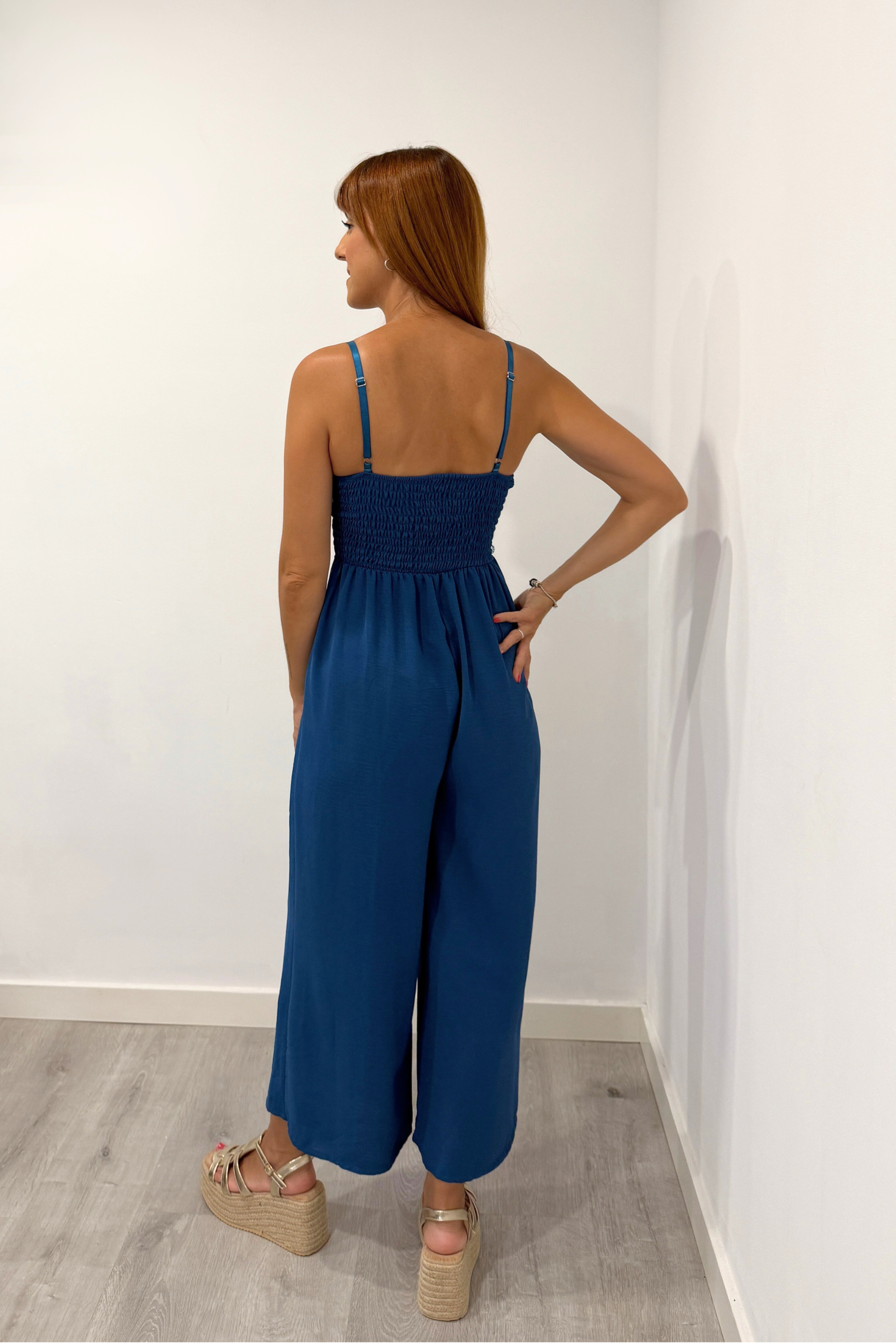 Luce un look fresco y moderno con este mono cropped, diseñado para combinar estilo y comodidad. Destaca por su lazada en el pecho con cascos incorporados, que aporta sujeción y un toque femenino. La espalda con panel de abeja garantiza un ajuste perfecto, mientras que sus tirantes elásticos y regulables se adaptan a tu cuerpo. Su pantalón de pata ancha añade movimiento y elegancia, ideal para salidas casuales o eventos especiales.